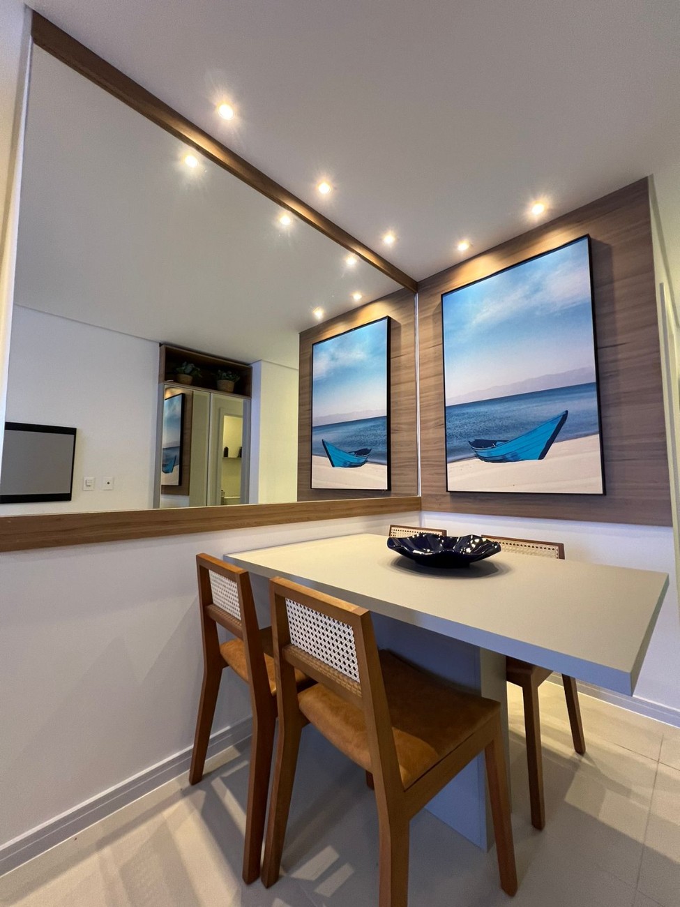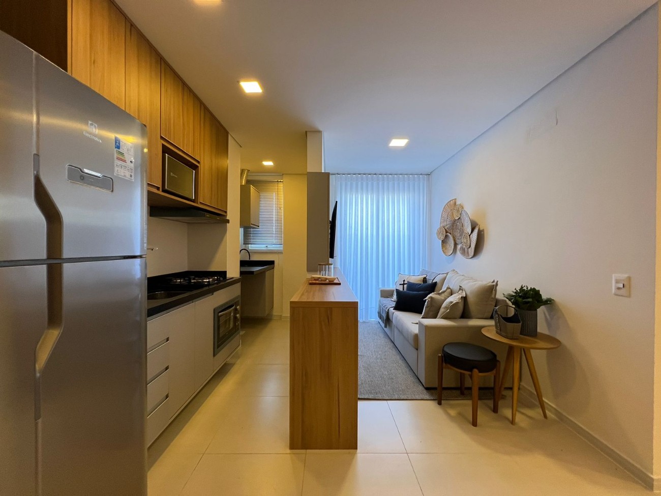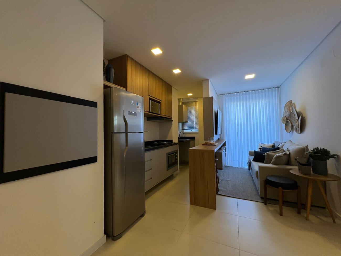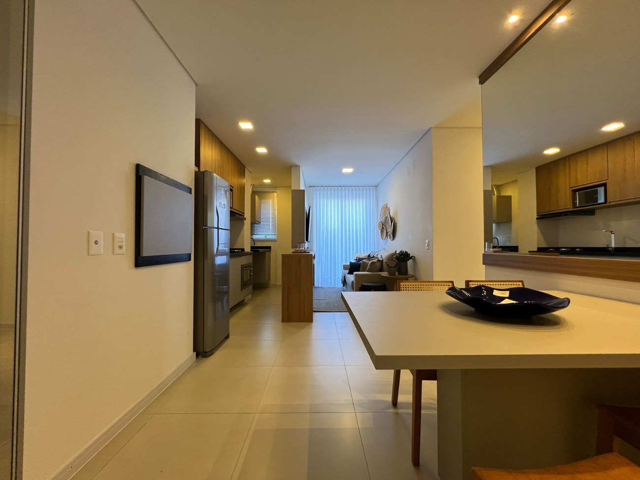Excelente apartamento com amplo terraço, são 2 dormitórios, sendo um suíte, área de serviço e cozinha integradas, banheiro social, churrasqueira, box para carro e espera para split, gás central hidrômetros individuais, apartamento pronto para uso. Edifício com infraestrutura completa Localizado no bairro Navegantes na Rua Marabá a poucas quadras do mar.