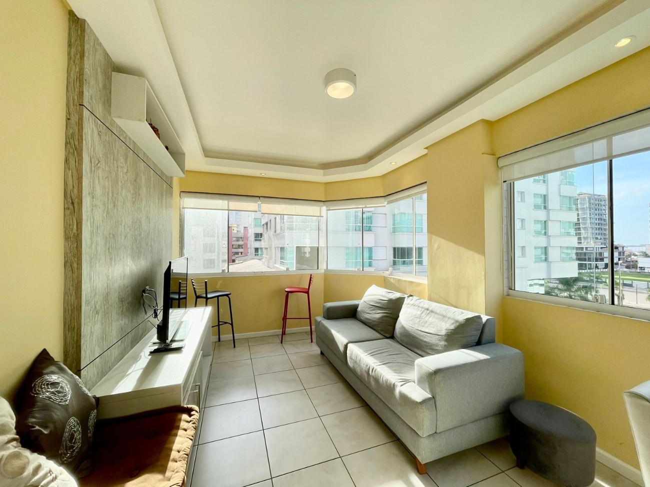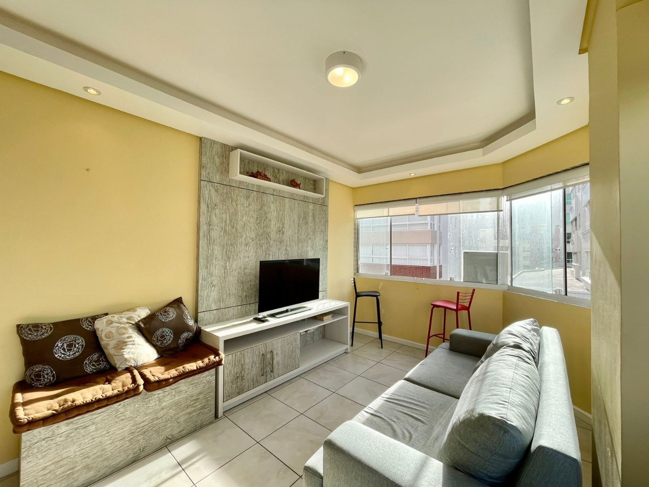 Apartamento dois dormitórios, suíte, banheiro social, living integrado, area de serviço, churrasqueira, bem mobiliado. Prédio com dois elevadores, hall decorado, piscina, salão de festas, sala de jogos. Box de garagem. Vista lateral para a praça.