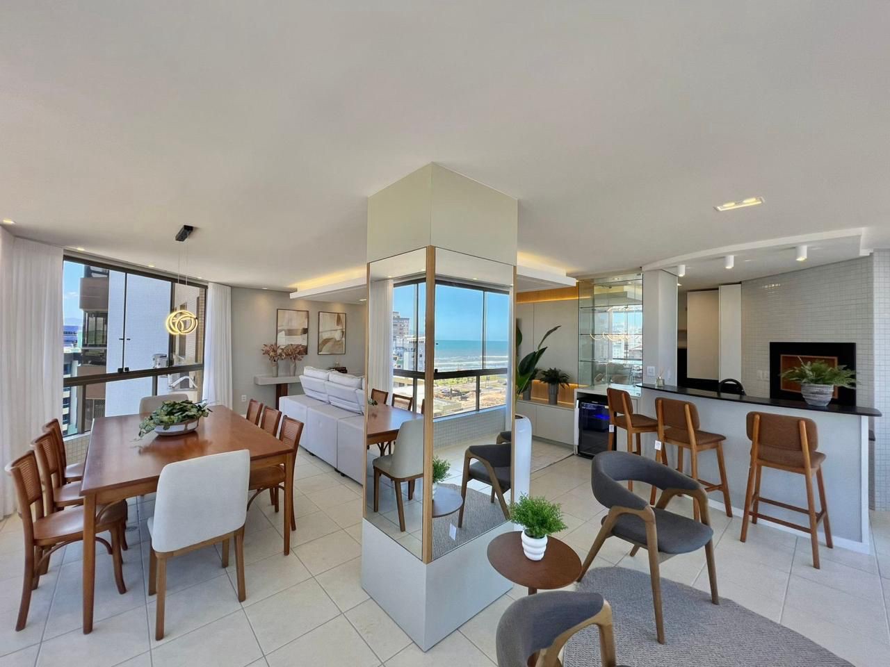 Amplo apartamento no centro de Capão da Canoa, composto por 3 dormitórios, mobiliado e decorado, sendo 1 suíte, banho social, amplo living integrado em 3 ambientes, sacada de esquina com linda vista, cozinha americana, apartamento mobiliado, 2 vagas de estacionamento. Edifício comercial e residencial no centro de Capão.