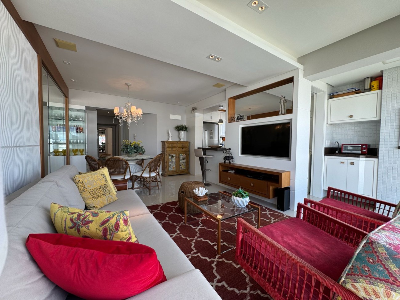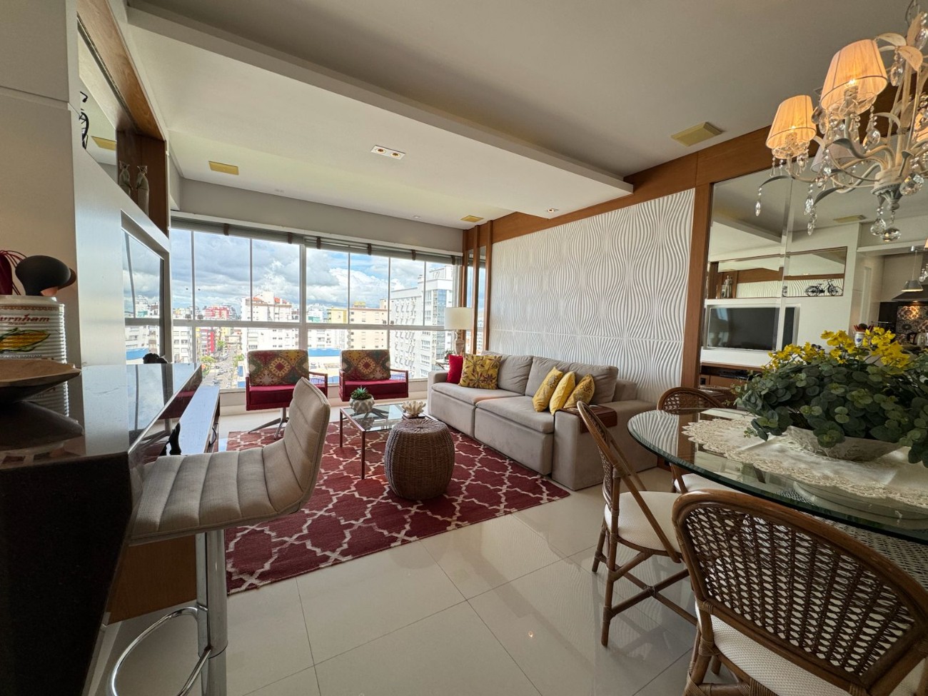 Belíssimo apartamento de três dormitórios, suite, amplo living dois ambientes, sacada de frente integrada com churrasqueira, cozinha americana, área de serviço, box de estacionamento. Edifício novo, obra classe A, todo em porcelanato, andar alto, com água quente, gás central, hidrometro individual, espera para split, luz por presença nos corredores. Localizado em frente á linda praça de lazer. Localizado em frente á linda praça de lazer arborizada, com vista eterna para o mar e serra!