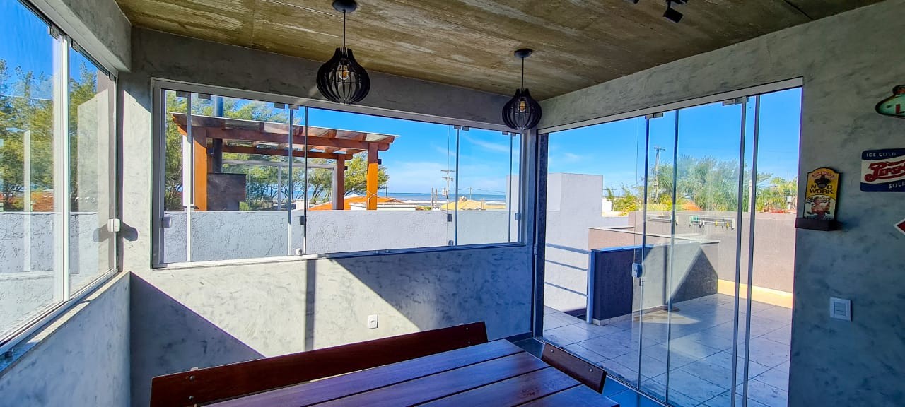 Casa composta por 3 dormitórios sendo 1 suíte, mobiliada, living estar e jantar, cozinha, lavanderia completa, churrasqueira, split na suíte, gás central. Tendo ela posição solar frente sul. Garagem 2 carros, terraço com salão de festas, vista para o mar.