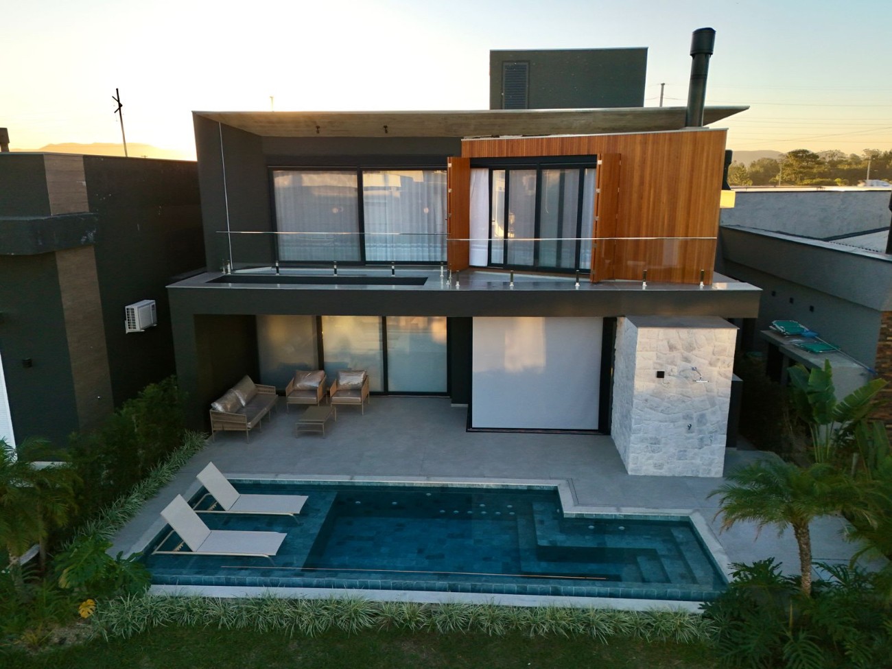 Sobrada na beira do lago no condomínio Capão Ilhas Resort, composto por 04 Suítes( sendo uma térrea e uma master ), com 293 M² de área construída, lavabo, living Integrado com pé direito duplo, finamente mobiliado e decorado, casa com automação, piscina de concreto, projeto arquitetônico imponente, Condomínio com infraestrutura completa, 02 Clubes, acesso à Lagoa.