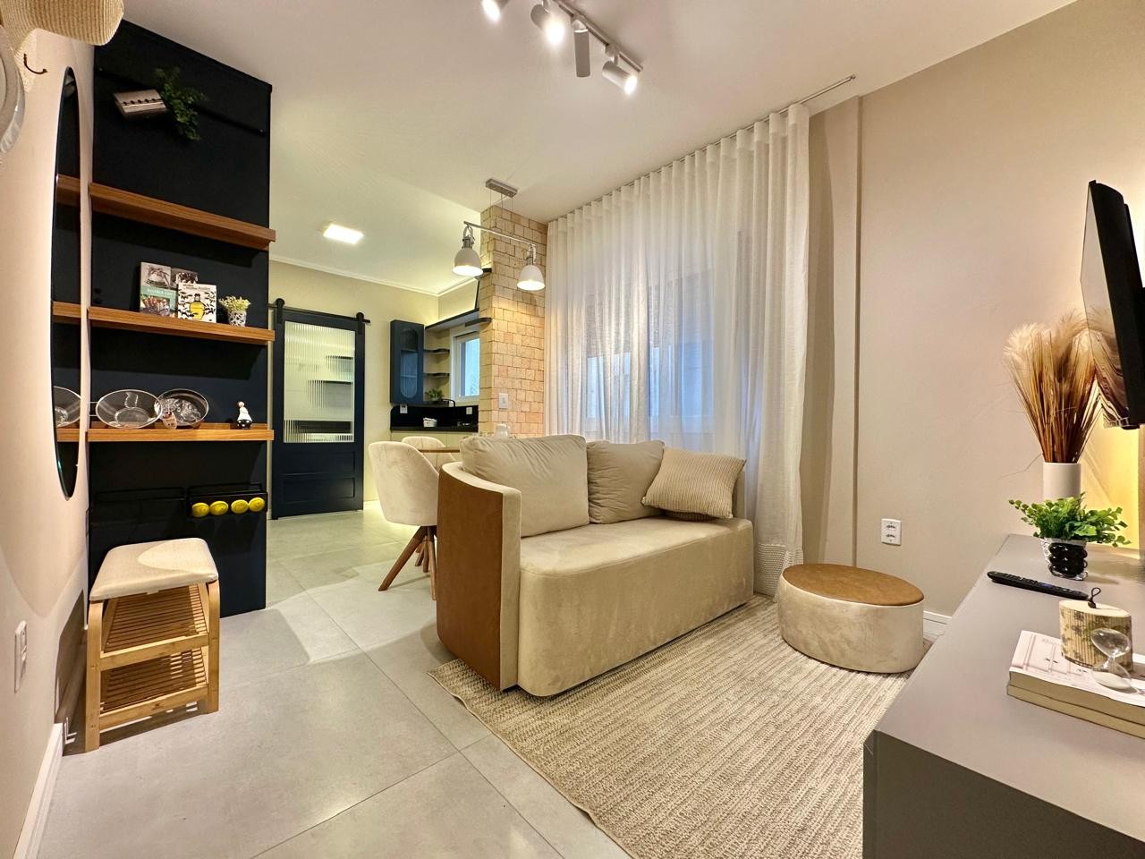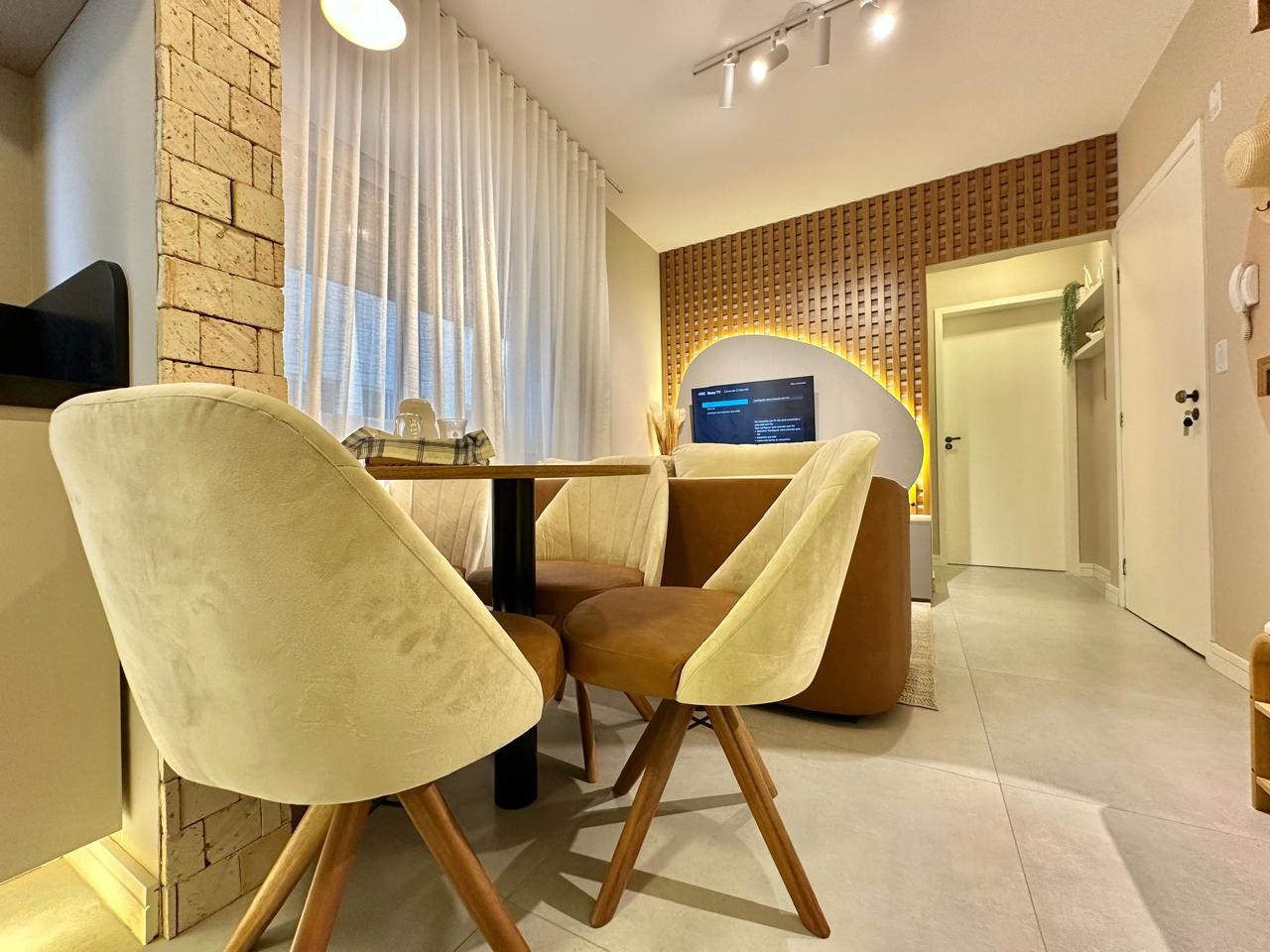 Apartamento de um dormitório, mobiliado e decorado, sala de estar e jantar, cozinha sob medida, área de serviço separada, churrasqueira, box de fácil acesso. Edifício com elevador, zeladora anual, localizada na rua Marabá, centro da cidade.