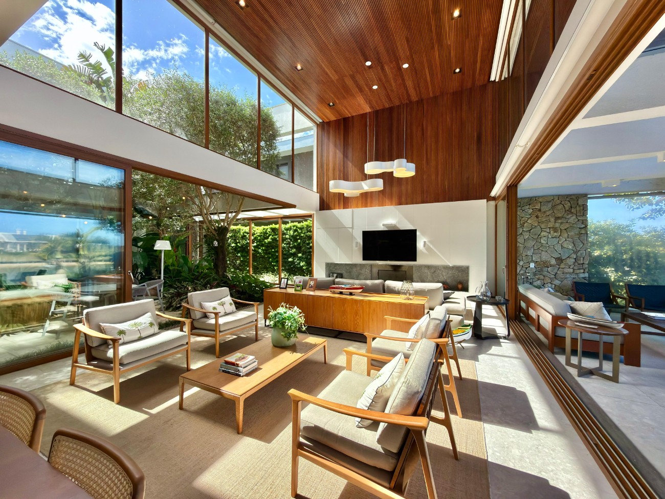 Sobrado de alto padrão com 460 m² de área construída em lote de 560 m², localizado em condomínio fechado com marina e acesso direto à lagoa. O imóvel possui 05 suítes, sendo 01 suíte master com closet e banheira de hidromassagem, além de lavabo e dependência de empregada. Conta com living amplo com ambientes de estar e jantar integrados, pé-direito duplo que valoriza a iluminação natural e um jardim de inverno integrado à casa, trazendo charme e sofisticação aos ambientes. A residência está mobiliada, decorada e climatizada, com arquitetura moderna e atemporal e revestimentos em pedra natural, agregando elegância e durabilidade ao projeto. Na área externa, possui ampla área de lazer com piscina de concreto de frente para a marina, além de banheiro externo de apoio à piscina, proporcionando conforto e privacidade para momentos de lazer. O imóvel ainda conta com vaga para 02 carros. O condomínio oferece infraestrutura completa de lazer e segurança, além de 02 marinas particulares e acesso direto à lagoa, ideal para quem busca qualidade de vida, contato com a natureza e exclusividade no litoral.