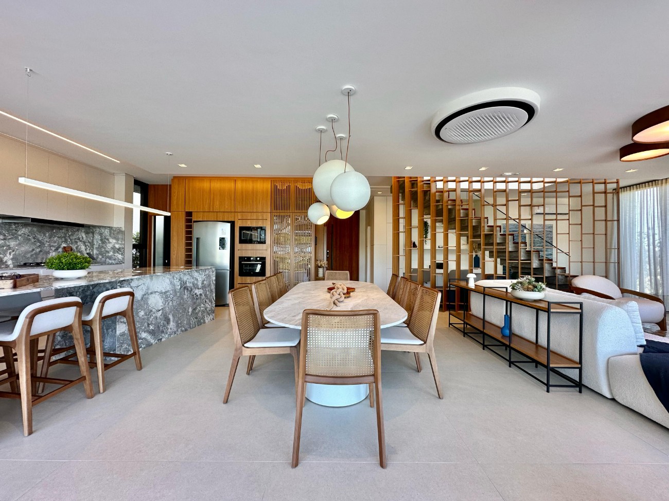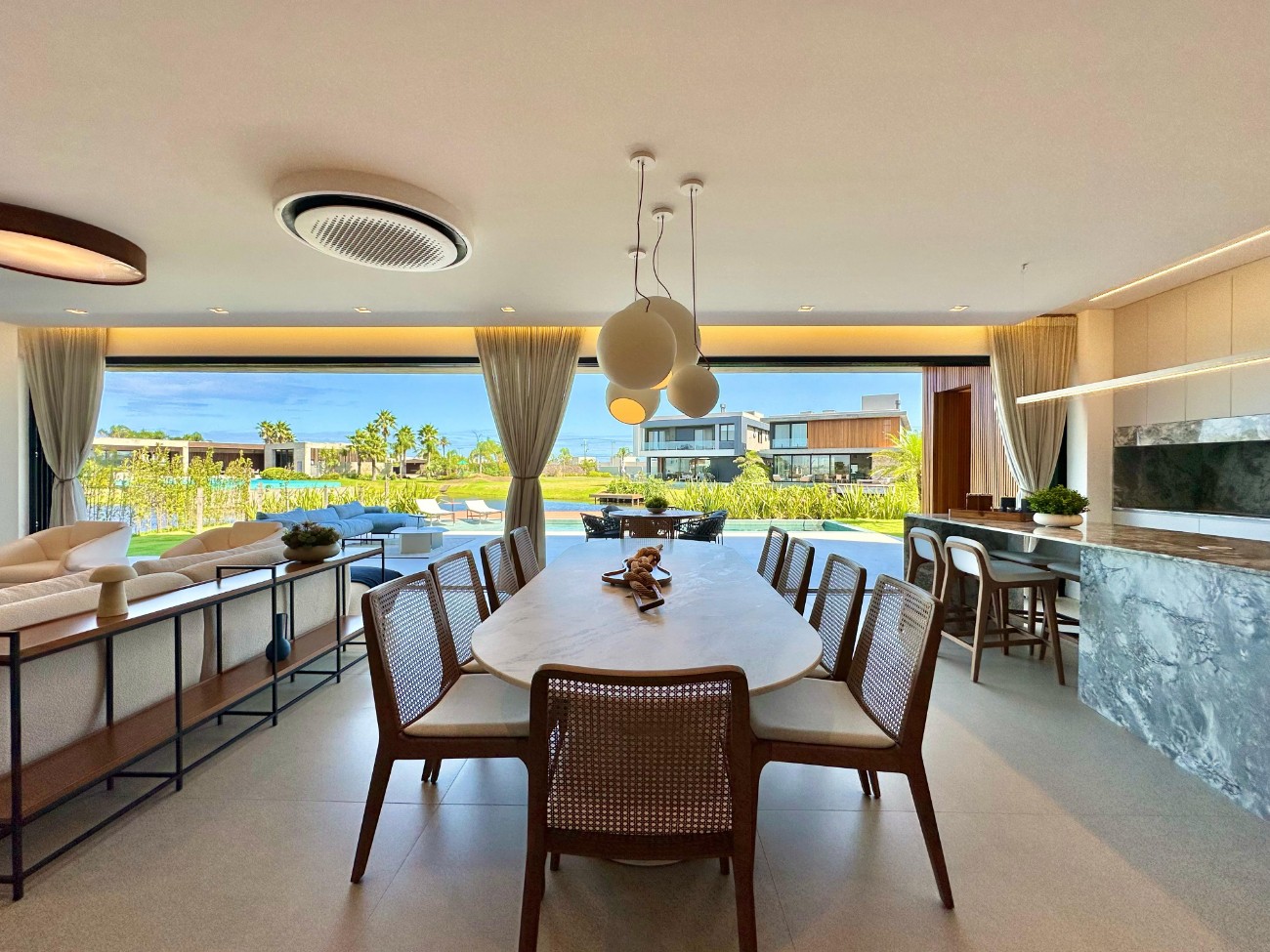 Apresentamos uma excepcional oportunidade de adquirir um magnífico sobrado à beira do lago, com 388 m² de puro encanto, situado em um condomínio fechado no deslumbrante litoral norte gaúcho. Este imóvel impressiona com suas cinco suítes, sendo duas master e uma térrea, ideal para proporcionar conforto e privacidade. Um elegante home office, um lavabo e um living amplo e integrado destacam-se em um espaço finamente decorado e totalmente mobiliado, ideal para quem aprecia o bom gosto e a sofisticação. A lareira e a excelente iluminação natural criam um ambiente acolhedor, enquanto a piscina em concreto, com espera para aquecimento, convida a momentos de lazer inesquecíveis. O terraço no segundo andar oferece vistas espetaculares, e a tecnologia de automação completa traz modernidade e praticidade ao dia a dia. A jardinagem meticulosamente planejada, com sistema de irrigação, e a vaga coberta para dois carros são toques que fazem a diferença. Aproveite também o deck junto ao lago, perfeito para relaxar em um ambiente sereno e privativo. O condomínio conta com infraestrutura completa e portaria 24 horas, garantindo segurança e comodidade para você e sua família. Não perca a chance de viver em um verdadeiro oásis à beira do lago!